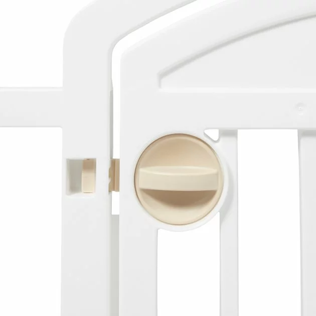 Give your furry friend a safe and secure place to play and lounge with a spacious pen from Frisco! This exercise pen safely keeps your pet enclosed in any indoor area you choose, so they can stretch out in the 18 square feet of play space while you relax knowing your best pal is comfortable and out of trouble. The eight individual panels have an interlocking design that snaps together easily with no added parts, and the secure, double-latch door requires no extra assembly time. Just snap the panels together and relax! This pen has a configurable design, so you can adjust the shape of the enclosure to hold their food and water bowls, plenty of toys and even a comfy bed. Plus, to protect your floors from scratches and scuffs, the panels have non-skid rubber feet that keep the pen in place.