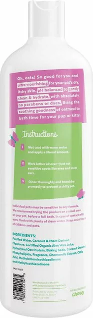 - Nourishing oatmeal shampoo gently cleans and soothes dry skin. Suitable for use on dogs and cats.
