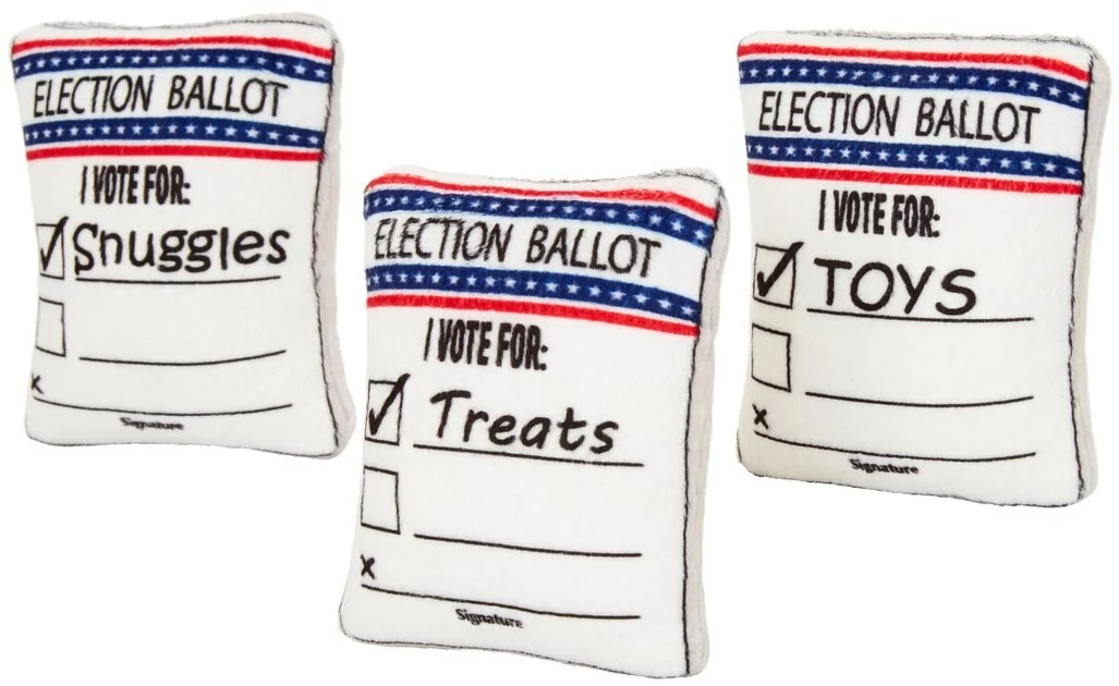 When your recount comes up short, pick up one of these refill three-packs for the Frisco Ballot Box Hide-and-Seek Puzzle Dog Toy. These plushie ballots are soft, squishy and squeaky, so they’ll get your dog’s attention and they’re easy for your pup to pull out of the ballot box base. Keep the patriotic fun going with this three-pack of refills!