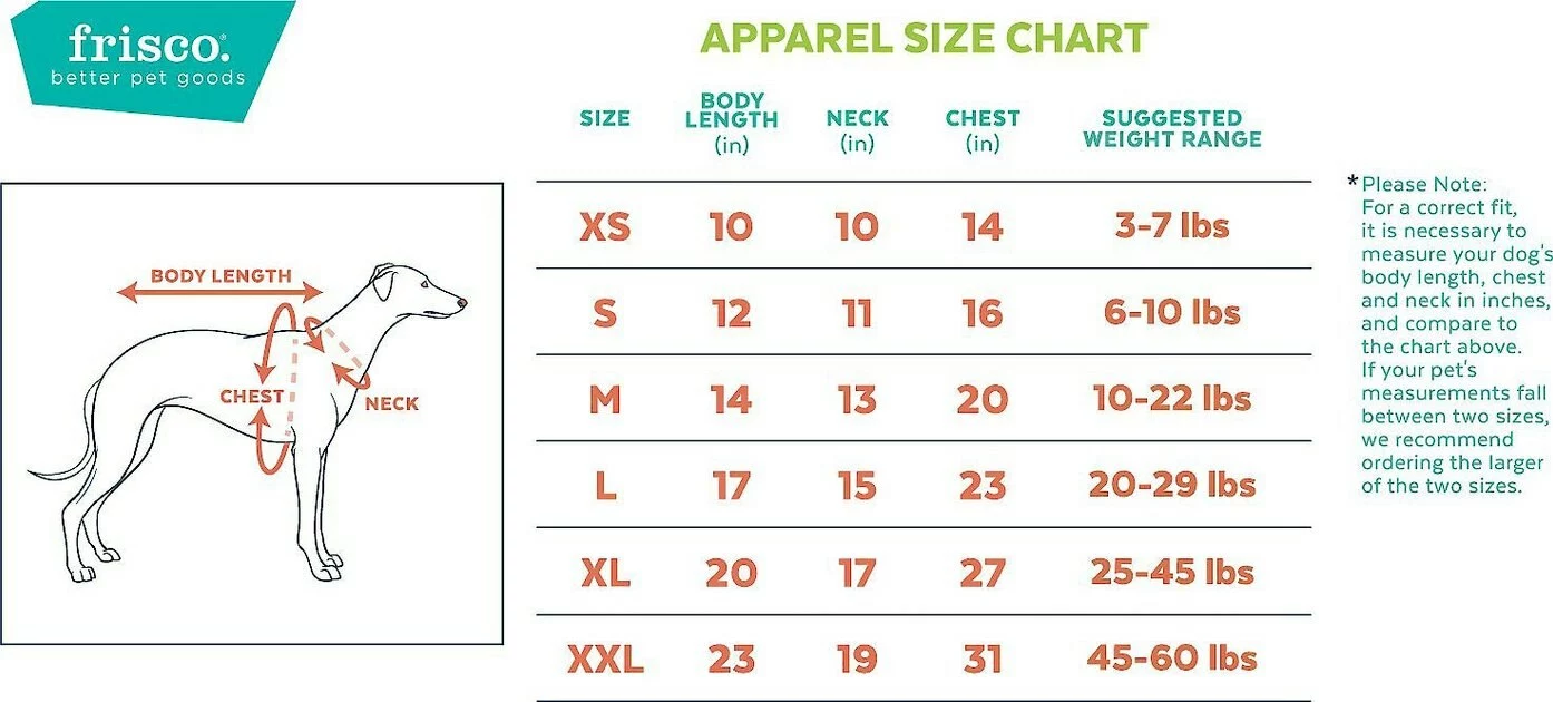 For the best fit, match the below dimensions to your pet’s measurements as closely as possible. If your pet falls somewhere between two sizes, we advise ordering the larger of the two.