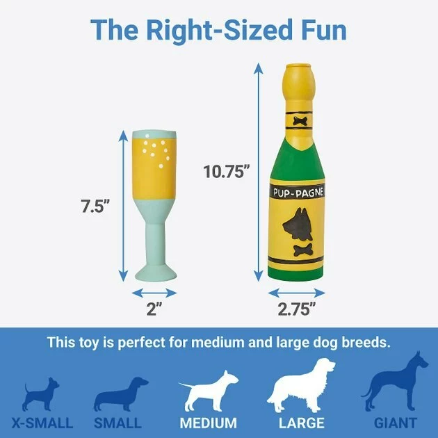 Pop bottles for your bestie’s birthday! These toys come in a two pack with a bottle of champagne and a glass of bubbly. They’re made of a squishy latex material with a built-in, noisy squeaker that makes them easy on your dog’s mouth and ideal for loads of dog games like catch and fetch. With two options to choose from during playtime, it’ll be easy to get your dog engaged in their games and keep them active with these toys!