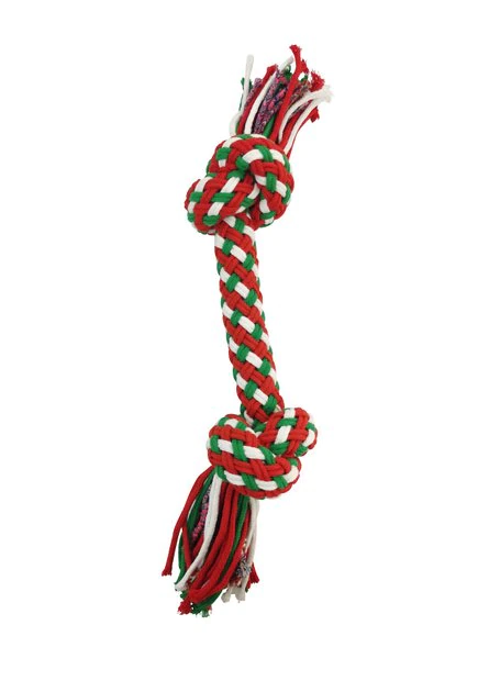 - Classic, bone-like rope shape with knots at both ends of the toy.