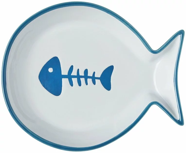 This fish-shaped dish is sure to be a hit with your favorite feline! After all, it’s in the shape of their most favorite fishy snack. This ceramic bowl is navy blue around the outside with a fishbone shape down on the bottom for a little extra furry paw-sonality too. Its wide, shallow, saucer-style design helps kitties keep their whiskers clean when eating and drinking, and it’s got a non-skid base to help keep it in place.