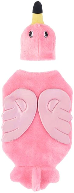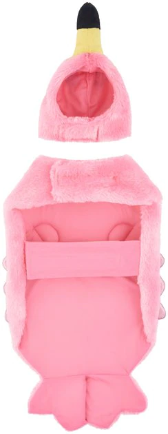 Animals dressed like other animals—what could be cuter? The Frisco Flamingo Dog & Cat Costume comes in two pieces, with a flamingo body and a separate headpiece. The body attaches easily with hook-and-loop fasteners at the neck and belly, and it’s brightly colored in flamingo pink, made from soft, furry fabric and featuring shiny, metallic wings for an extra snazzy touch. The separate head has ear holes for pup comfort, along with a hook-and-loop chin strap. Wherever the party takes you this Halloween, your pup will be the cutest in the whole animal kingdom with this costume!