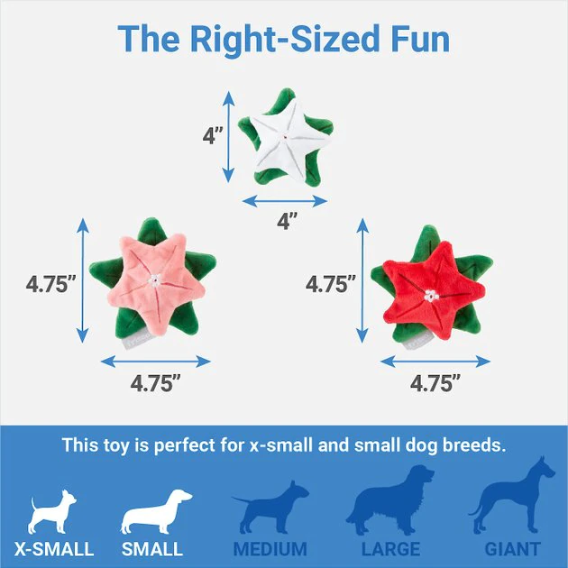 It’s the holidays and playtime with your pup is blooming! Give your pooch the nicest plush toys with this three-pack holiday flowers toy set. This pack comes with three different kinds of flowers for three times the fun. Every toy comes with a sewn-in squeaker, so treat your dog to a good time and watch as their holiday season brightens up.