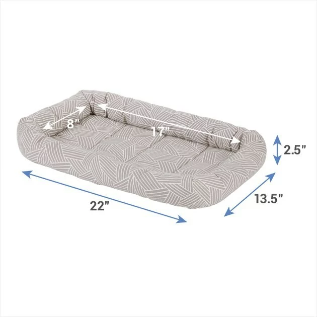 The Frisco Gray Basket Weave Pet Bed & Crate Mat makes your pet’s crate, carrier, kennel, favorite spot or home away from home even cozier. The quilted bed is made with ultra-soft material with a foam pad on the bottom for extra cushioning. As your pet curls up and nestles into the perfect position, he can rest his head on the thick, comfy bolster that’s filled with polyester fiber for added support. No matter whether you’re traveling or simply crate training, your faithful companion will feel right at home with this snug, cozy mat. It also makes a quick and easy bed on its own and a safe spot for your pet when you’re on the go. It comes in a variety of sizes to meet every pet’s needs and fits most standard crates or carriers from 18 inches up to 54 inches. And for easy cleaning, you can throw it in the washer and dryer.