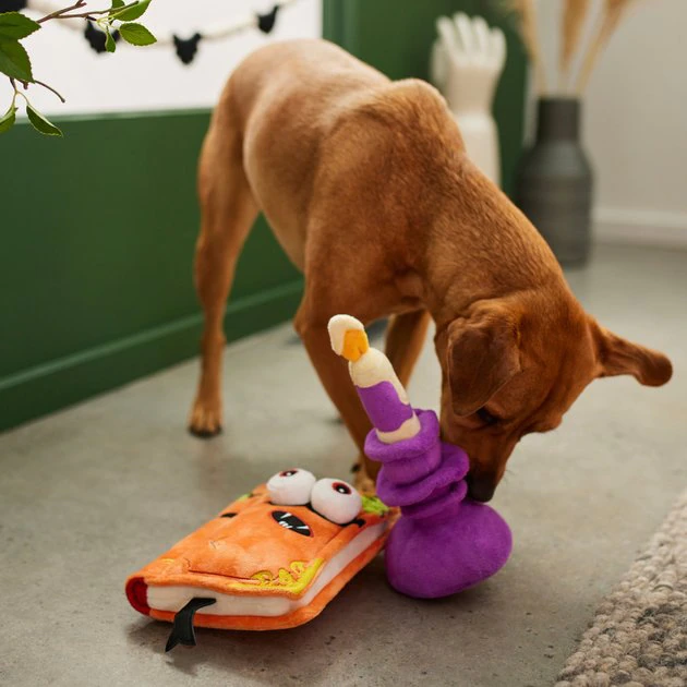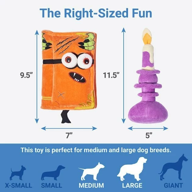 Frisco Halloween Monster Book & Candle Plush Squeaky Dog Toy, 2 count