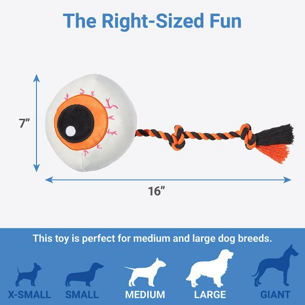 - Spooky eyeball has a soft fabric cover and plush stuffing that’s easy on a dog’s mouth.