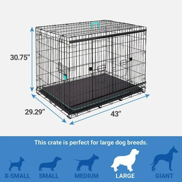 - Double sliding doors take up less space and allow your pet to easily enter their crate.