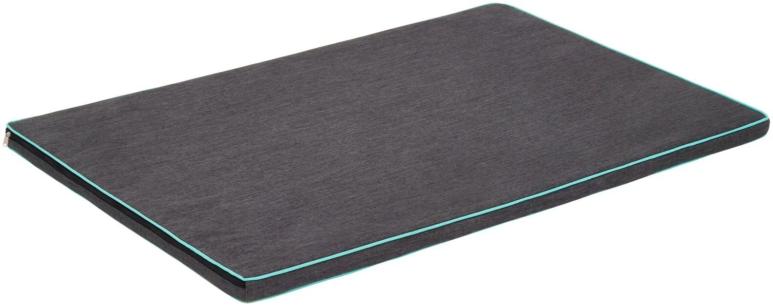 Give your dog a well-designed space just for them with this heavy-duty wire crate kit by Frisco! You get the whole kit you need to create a special spot just for them—the crate, the comfy mat and the base pan. It’s designed to fit and work well in tighter spaces, with dual sliding doors on the front and side instead of traditional swinging doors that take up space and often get in the way. It’s easy to set up and take down with no tools required—just unfold it and lock the panels in place to provide your pet the private place they need, wherever they are. With its enhanced locking system, this crate also simplifies the process of securing your dog’s spot down to one simple step. Plus, with teal accents on the lock and carrying handle, along with the piping on the crate mat, this crate not only works great but looks great, too. This is just the upgrade your pet’s private place deserves!