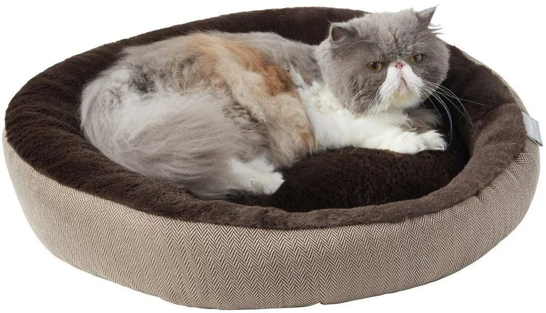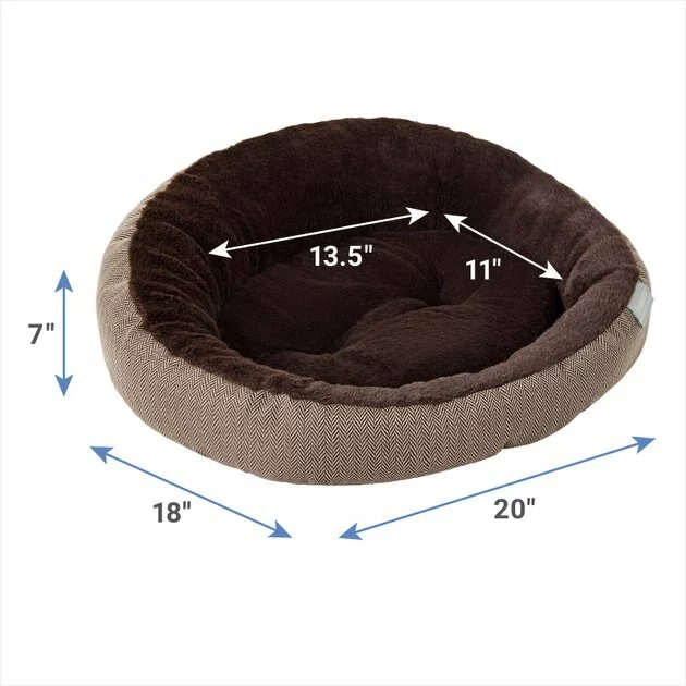 Cuddly pets, this is the bed for you! This round cuddler-style bed gives pets lots of cushiony, comfy space to snuggle up next to, with high bolsters and a very soft cushion in the middle. It’s ultra-plush and fashionable, too, with a trendy herringbone pattern on the outside that looks great in your home. Plus, it’s super easy to care for—this bed is machine washable, so just give it a quick wash to keep it clean, comfy and inviting, nap after nap.