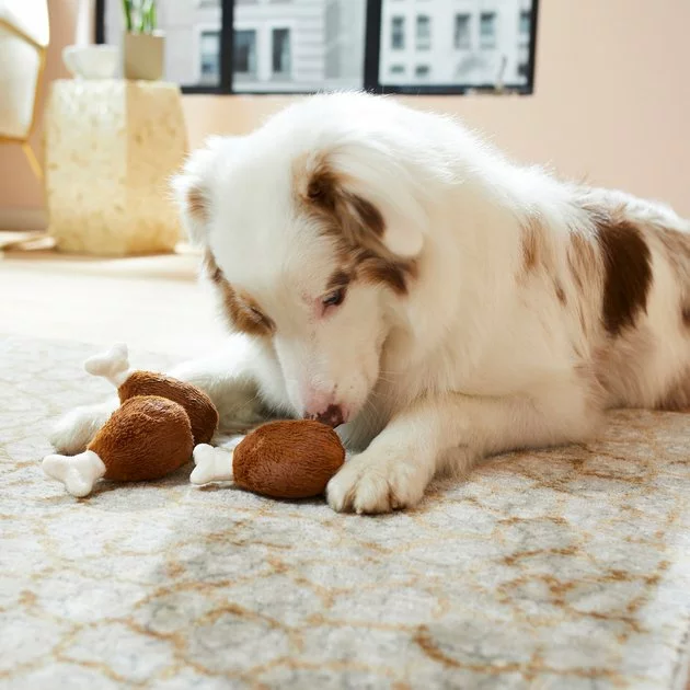 These plushy chicken drumsticks keep the fun going for the Frisco Hide and Seek Plush Chicken and Waffle Puzzle Dog Toy Refills, 3-Pack! After the original set wears out, just reach for a new pack of super soft, squeaky drumsticks to refill the waffle burrow and let your dog get back to their solo games of hide-and-seek. Now, you can make sure your furry friend never deals with doggie boredom.