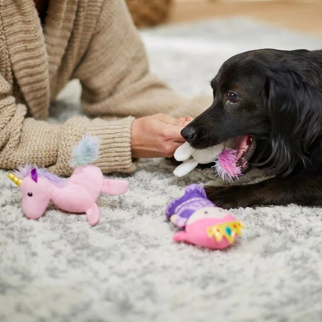 Use these magical friends to refill the Frisco Hide and Seek Plush Magical Castle Puzzle Dog Toy so you can keep the magic going for your fur friend! This three-pack includes all the original toys—two unicorns and a princess. Just put all these toys inside the base, maybe give one a squeak or two to get your dog excited for some solo play and watch as your dog exercises their mind and leaves doggie boredom behind. Puzzle your pup with Frisco!