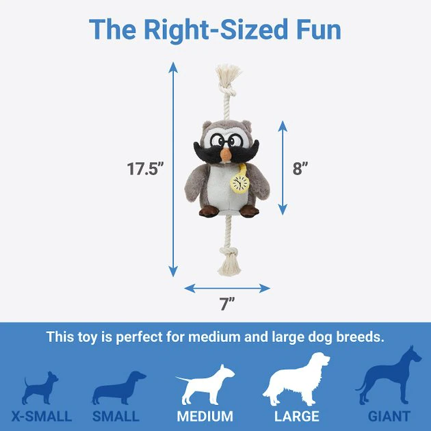 Frisco Magic Owl Plush with Rope Squeaky Dog Toy