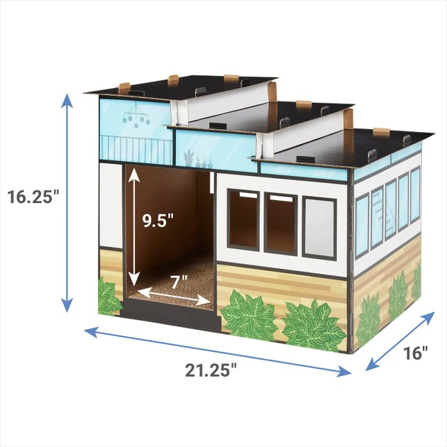 - Cardboard cat house provides your kitty with a private hideaway to scratch, nap and chill.
