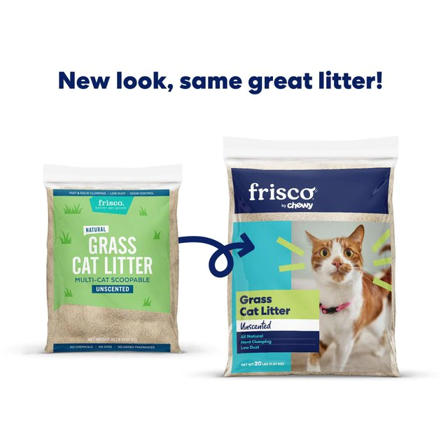 - Odor-busting, kitty-preferred litter from Frisco, by Chewy. Fast and solid clumping action that makes for easier scooping and disposal. Plus, it comes in a resealable bag for easy storage.