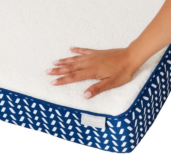 For your big dog, this large, supportive bed provides all the sleep surface your pet needs to get a good rest in, whenever they need it! The orthopedic foam base supports your best bud in all the right spots, letting them ease right into restful sleep come naptime. Plus, this bed is available in stylish, neutral gray-basketweave and navy-herringbone prints that can match your home décor.