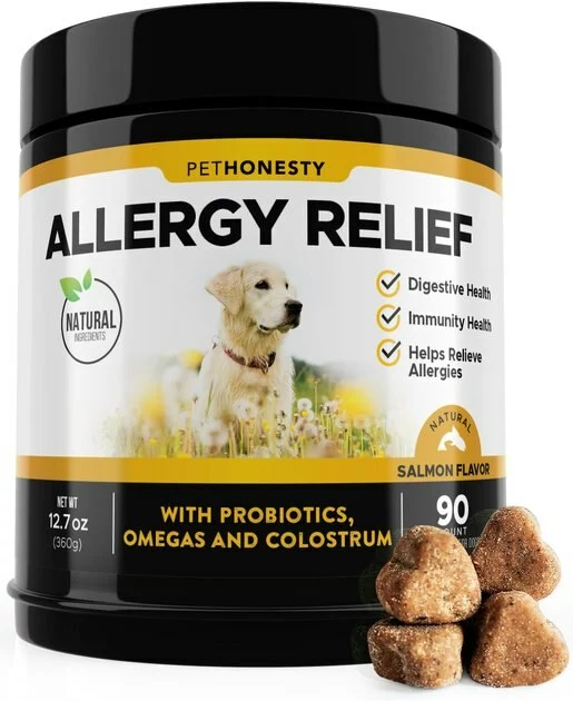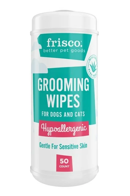 - Comes with a 50-count tub of Unscented Frisco Hypoallergenic Grooming Wipes with Organic Aloe for Dogs & Cats and a 90-count container of PetHonesty Allergy Relief Snacks Immunity Strength & Digestive Health Soft Chews Dog Supplements.