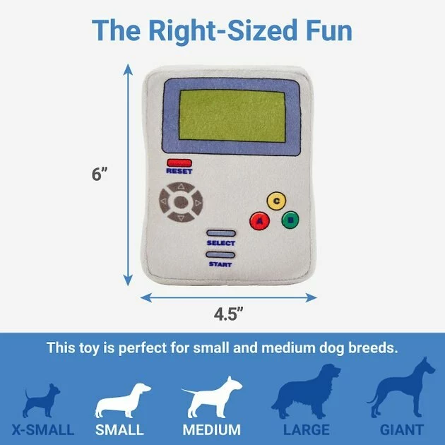 Game on, dog lovers! Level up with a retro blast from the past—no thumbs required! This plushy polyester toy is made for all the games like catch and fetch, and it’s great for cuddling up to as well. Plus, if you’re feeling nostalgic, you just can’t beat the retro aesthetic for some classic 8-bit cuteness.