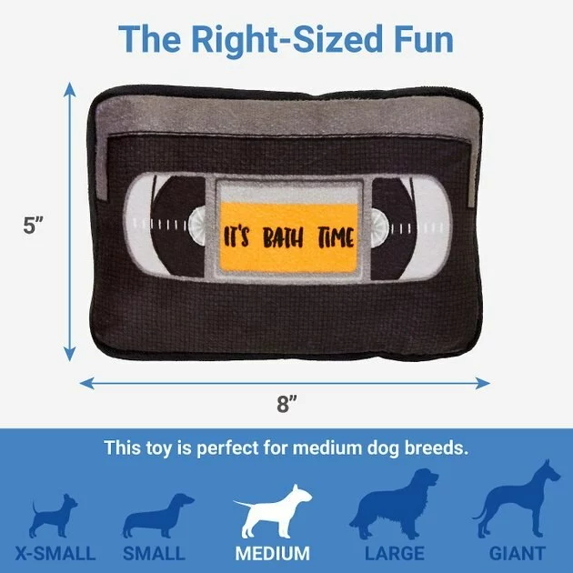 - VHS tape dog toy with a retro design that’s great for a bit of nostalgic fun.
