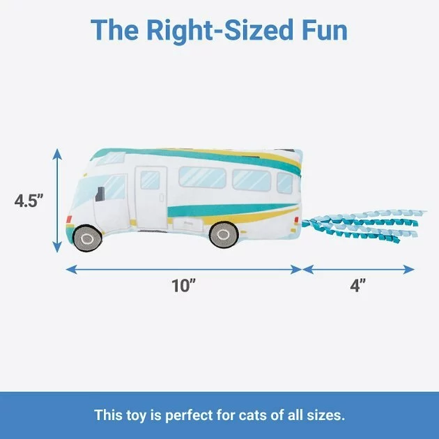 Press cruise control on playtime with the Frisco Road Trip Cruiser Van Plush Kicker Cat Toy! This adorable plush toy is stuffed with catnip and crinkle paper to hit the gas on fun and features curly strings for some batting action. Now this is a playtime adventure your kitty won’t want to miss!