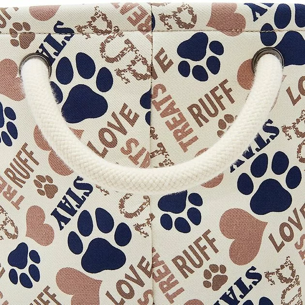 Frisco Round Collapsible Pet Toy Storage Bin, Tan Novelty Paws