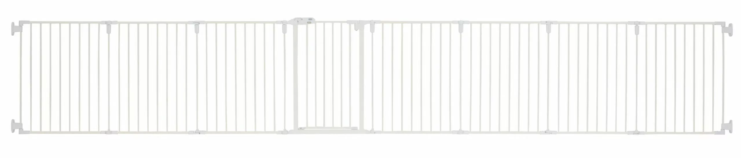 - Each panel has a powder-coated finish and features easy-press buttons that allow you to quickly remove panels and tailor the gate to your needs.