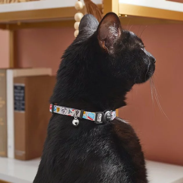 Sightseeing around the backyard or taking in the great indoors? Whether your cat goes outside or is indoor only, this breakaway collar combines comfort and safety for every kitty. It’s made with high-quality polyester webbing with a roadtrip-themed, traffic sign pattern and has sturdy plastic hardware with rounded edges that don’t poke, a metal ring for an ID tag, and a quick-release breakaway buckle. It clips in easily and stays on securely, but comes off quickly if the collar is pulled. Cats can explore with confidence thanks to this kitty safety mechanism, since it allows the collar to come undone if it gets snagged on a branch, furniture or other hazard.
