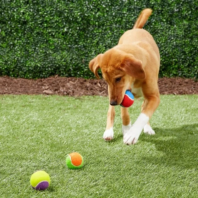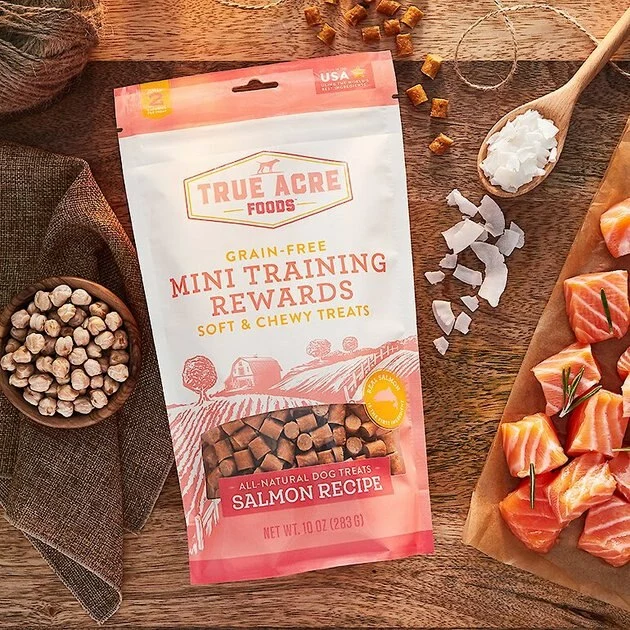 - Comes with a 3-pack of Frisco Fetch Squeaking Colorful Tennis Ball Dog Toys and a 10-ounce bag of True Acre Foods Salmon Recipe Mini-Training Rewards Grain-Free Soft & Chewy Dog Treats.
