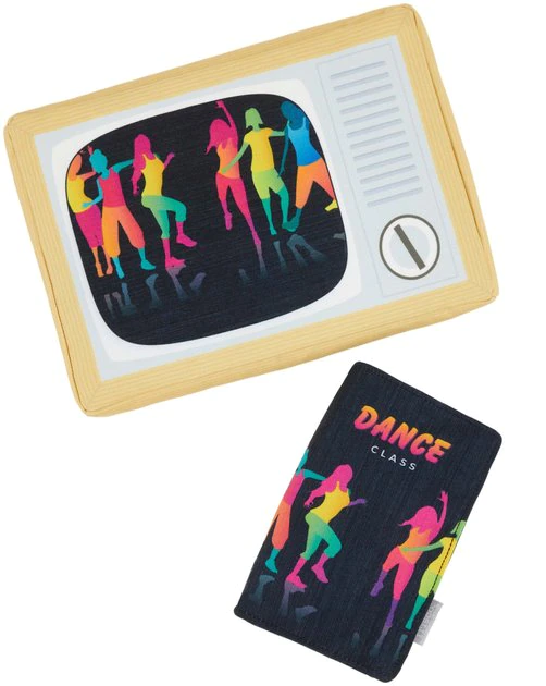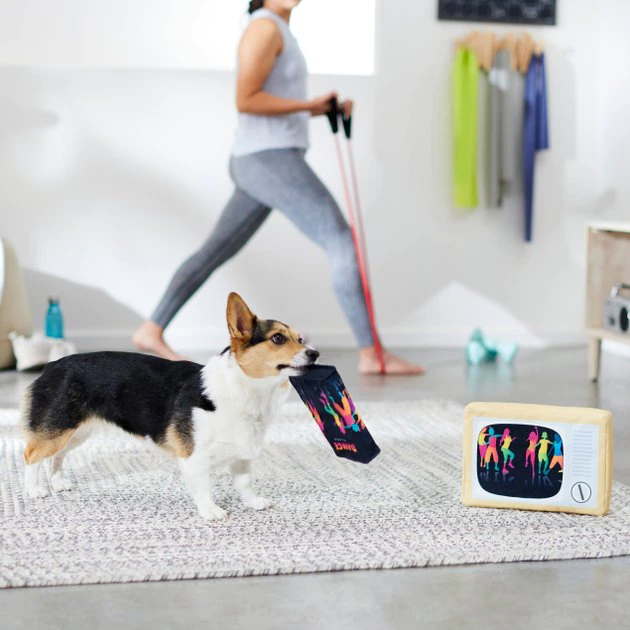 - TV and VHS plush dog toys include sewn-in squeakers to amp up the fun and keep your pup moving.