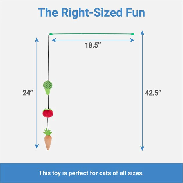 - Teaser cat toy includes three of the most popular vegetables that kitty simply won’t be able to resist.