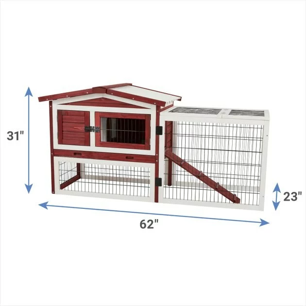 Give your rabbit a home that’ll put a little extra hop in those furry feet! Not only is this hutch suitable for rabbits, but it works for any small animal that you just so happen to call a friend. Made from high-quality solid wood, with a red finish and white accents, your pet will never want to leave this cozy, comfortable abode. Not only is this hutch easy on the eyes, it’s also super functional with its PVC roof that’ll help keep your friend protected from the outside elements. The access ramp offers a convenient path inside and outside of the hutch, so watch those cute little feet hop and scamp around their new favorite hangout spot.