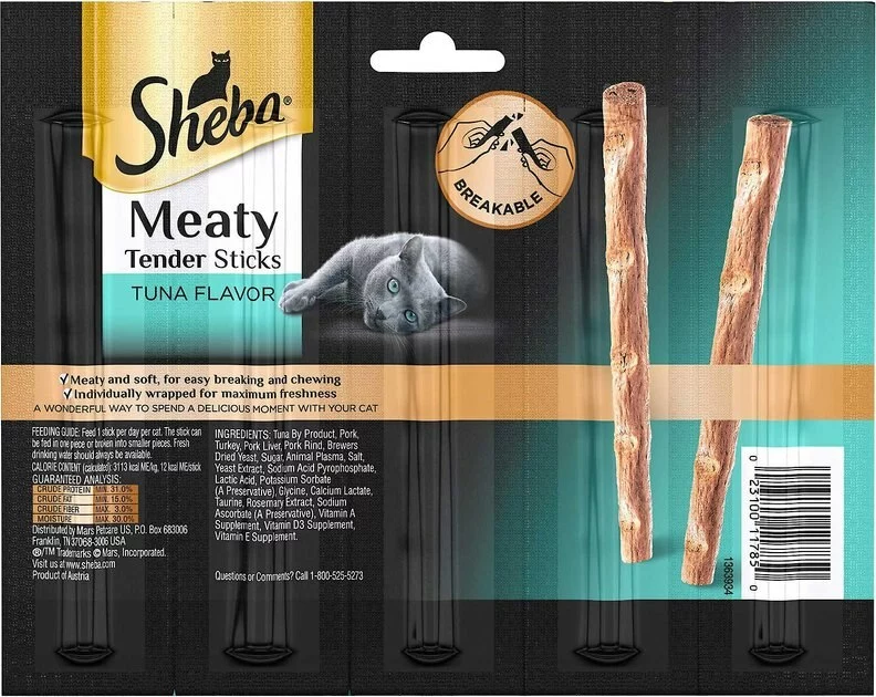 Sheba||Frisco Sheba Meaty Tender Sticks Tuna Flavored Cat Treats, 5 count + Frisco Refillable Catnip Cat Toy, Brown Squirrel